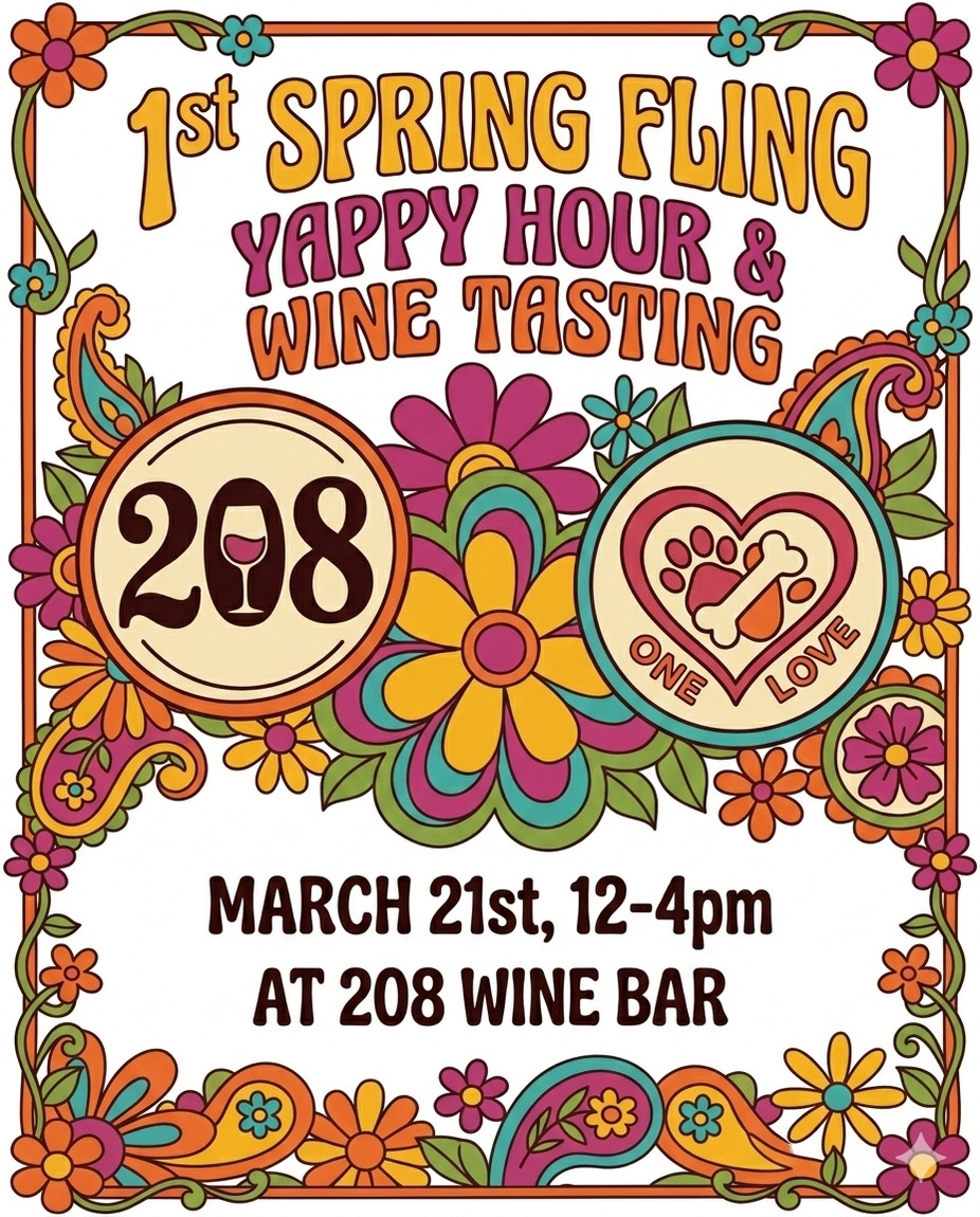 Get ready to raise a glass for a great cause! Let’s drink wine and save lives. 208 Wine Bar is once again teaming up with One Love Animal Rescue for our 1st Spring Fling Yappy Hour & Wine Tasting in partnership with Republic National Distributing Company. Whether you’re looking for a new furry family member or just want to enjoy a beautiful day with your pup or your pals, grab your leash and join us!