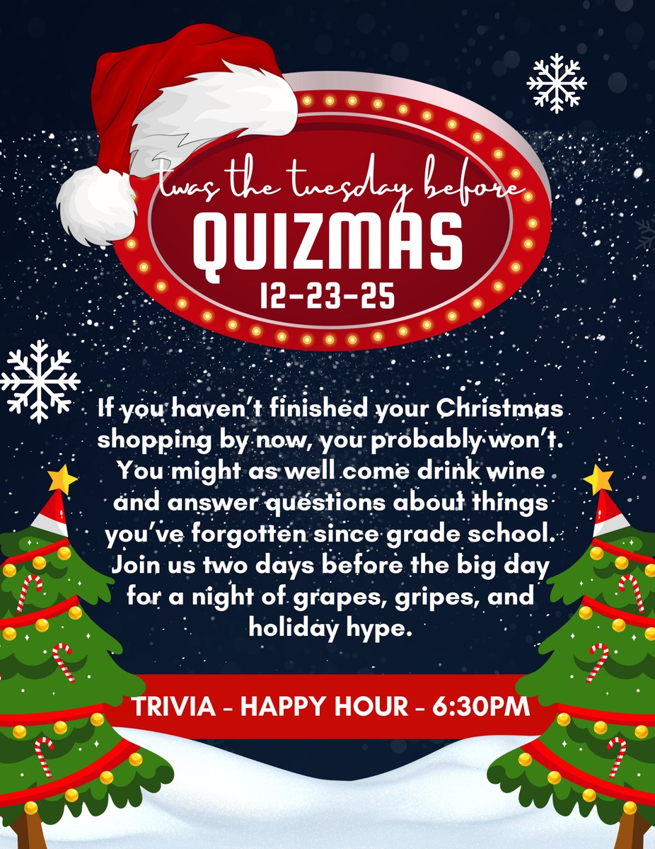Join us for trivia (or as host Nathan calls it.. Pub Quiz!) and happy hour starting at 6:30.